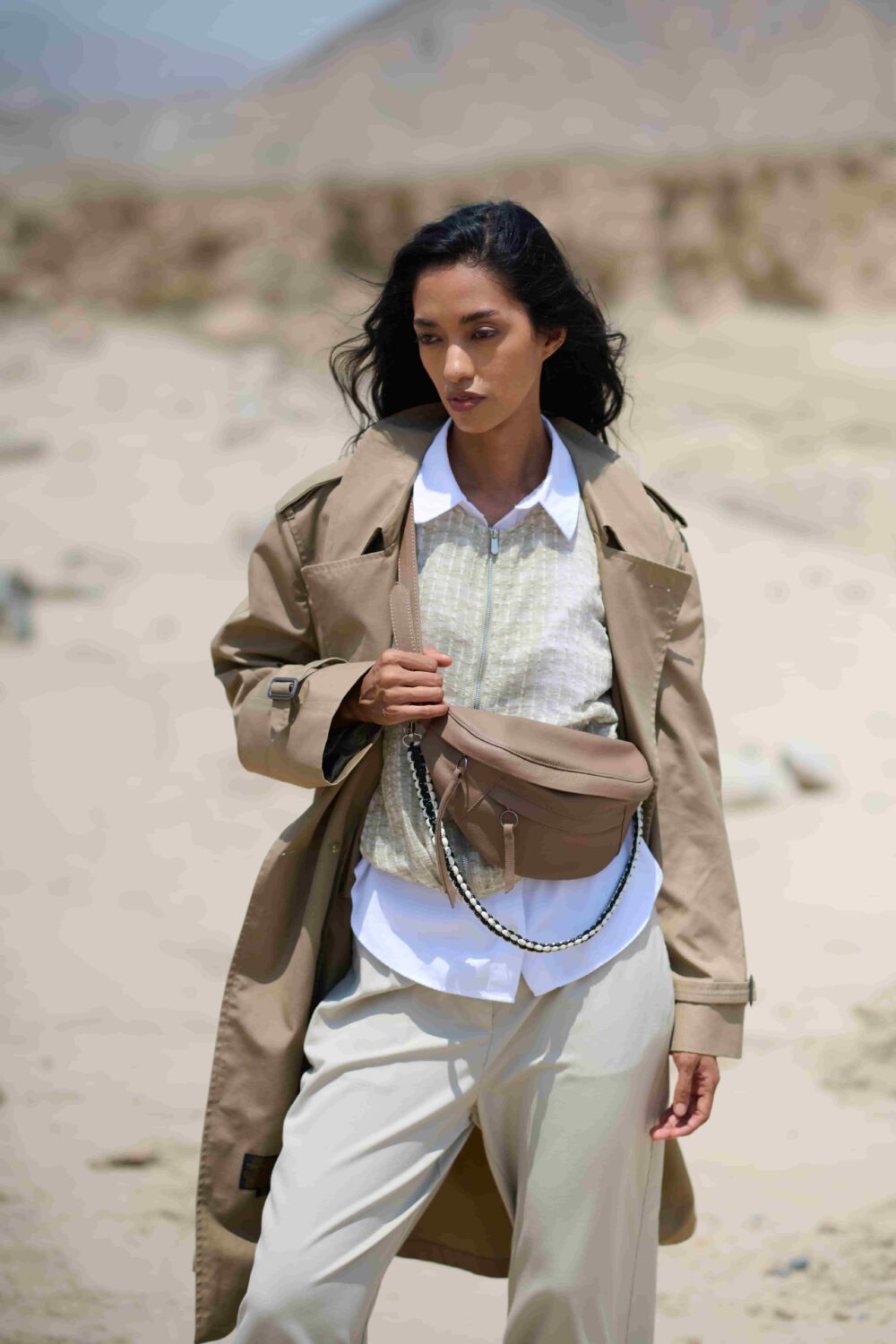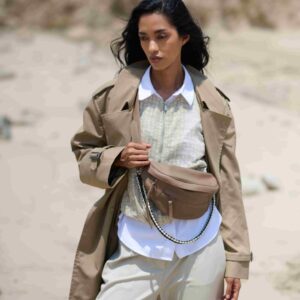 Crafted in soft leather with an adjustable strap for maximum comfort. Front, back, and interior pockets for impeccable organization. Cotton lining with Shipibo print. Handwoven adornment, removable for personalized style. Lightweight and functional for your daily adventures!