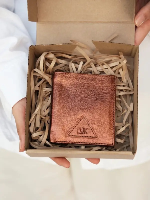 Leather wallet with smart design. Main compartment for bills, 4 card slots, and zippered coin pocket. Interior lined with Shipibo cotton fabric. Invisible magnetic closure. Compact yet spacious, ideal for keeping everything organized without taking up too much space. Practical and functional!
