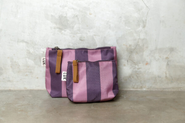 Practical and stylish. This set includes two pouches of different sizes, perfect for organizing what you need on your trips or daily routine. They are made of water-repellent material and feature leather pullers.