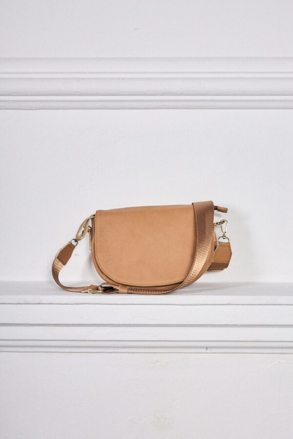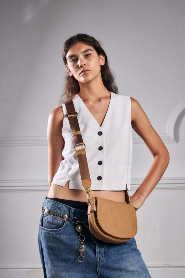 Crossbody bag made of 100% leather with an artisanal and practical design. Features a secure inner pocket and a lining illustrated in tribute to the Peruvian Amazon for a unique touch. The perfect accessory for urban looks!