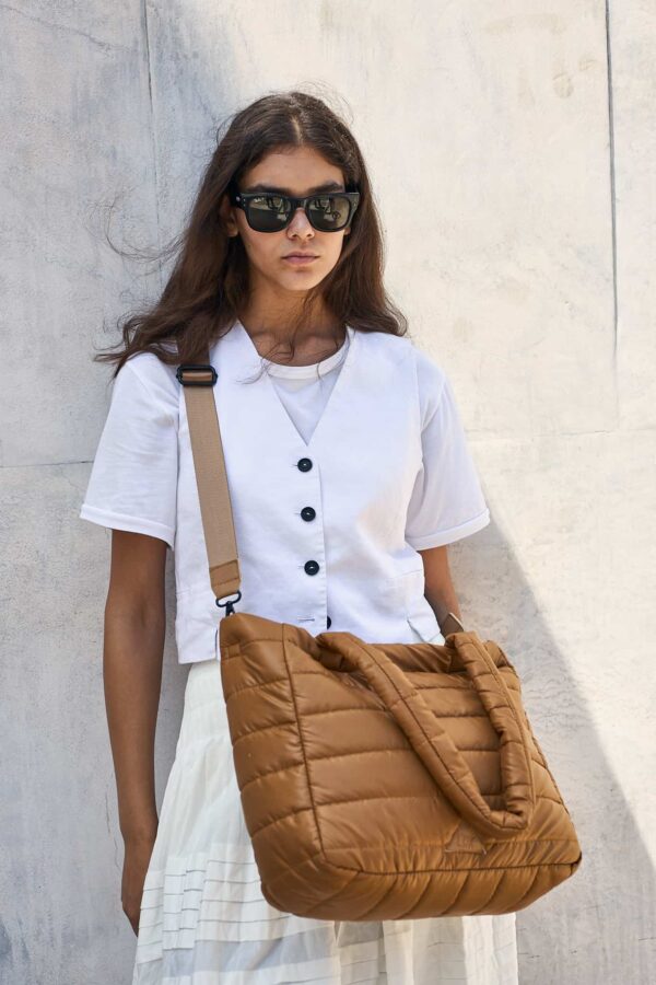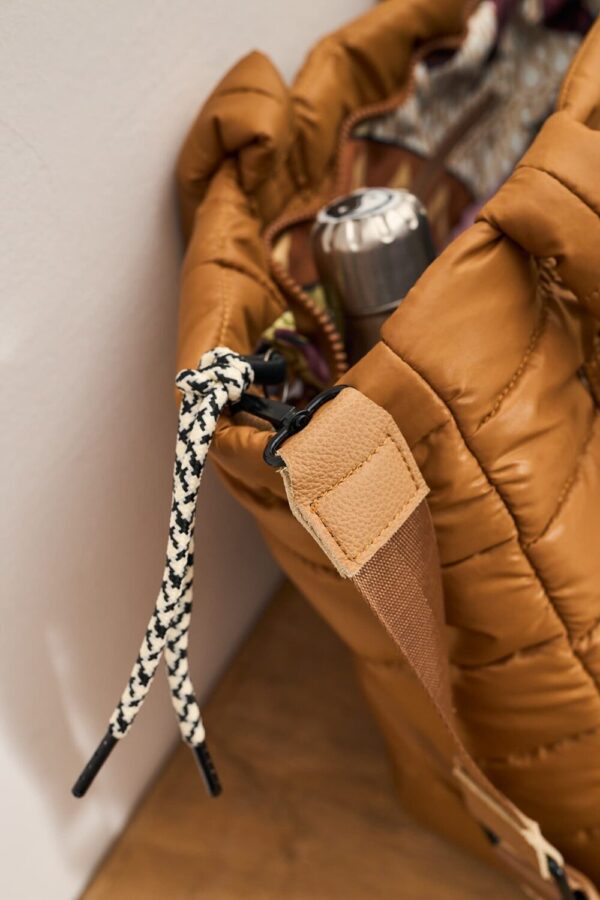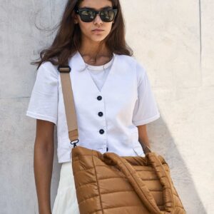 Quilted tote in Havana combines fashion and practicality. Featuring a thermos pocket, a secure 16" laptop compartment, organizing pockets, a carry-on compartment, and premium details. The perfect bag for travel or everyday use! It can hold all your essentials.