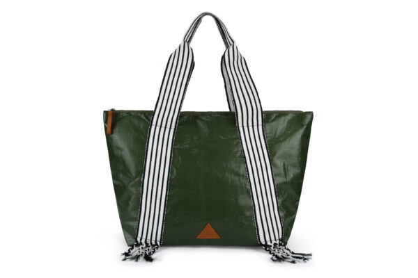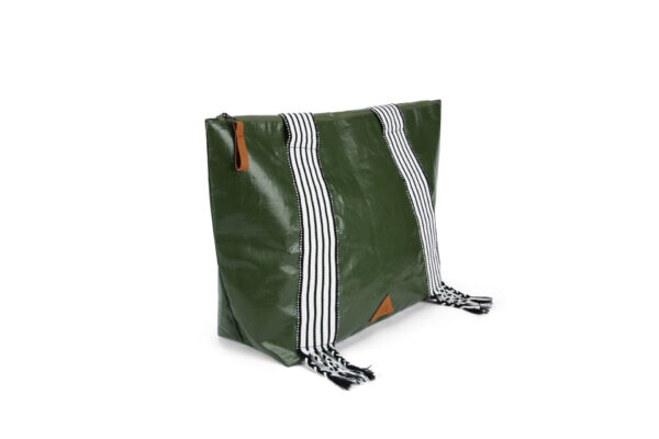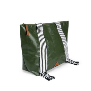 Waterproof and full of style. Its cotton woven handles, inspired by Peruvian tradition, offer a unique touch. With interior pocket for better organization. Logo and puller details in leather for an elegant finish.