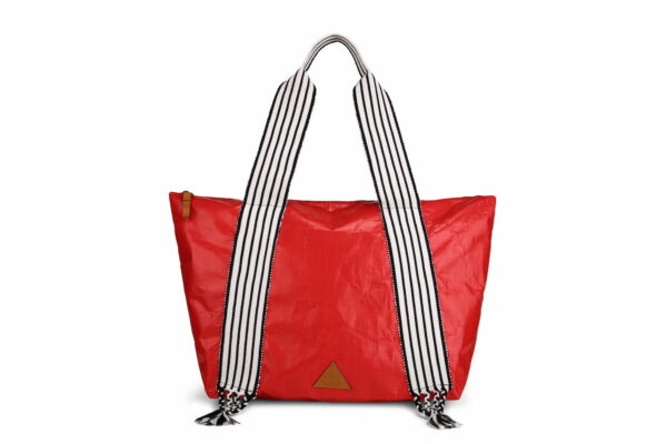 Style and functionality in one. Made with waterproof material and woven cotton handles, inspired by the sash of the northern Peruvian sailor. With interior pocket and elegant logo details and leather puller.