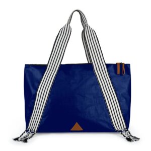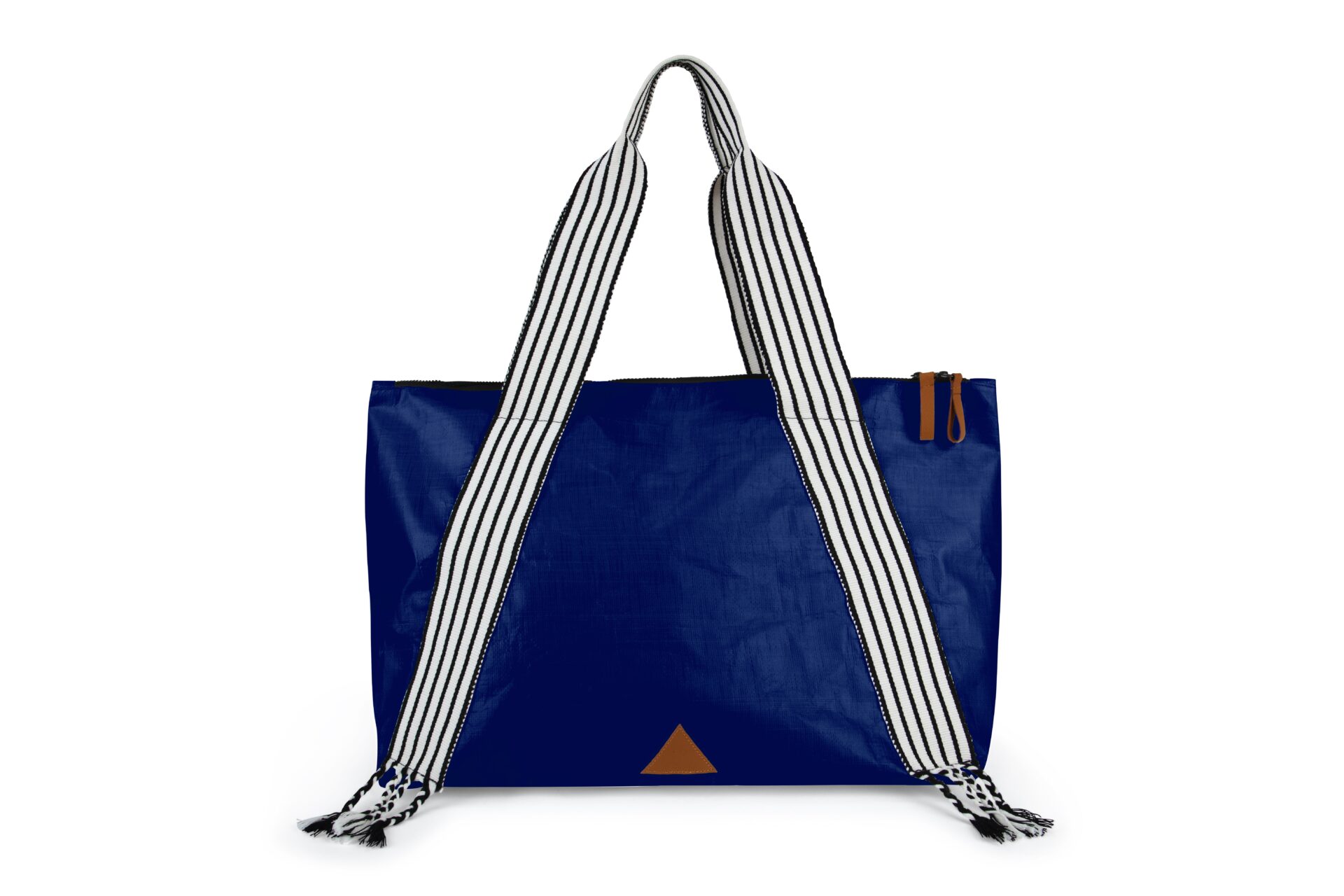 Elegant and waterproof. Woven handles representing the sash of the Peruvian northern marinera. Interior pocket, double-way closure, and leather details for a unique style. Ideal for the modern and active professional!