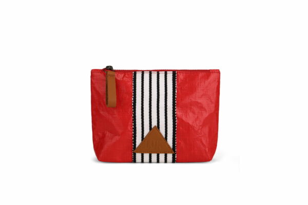 Compact and water resistant, this toiletry bag features unique details such as the logo and leather pull, along with the cotton fabric that reflects the northern Peruvian sailor sash.