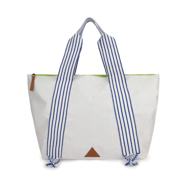Impermeable y lleno de estilo. Sus asas tejidas en algodón, inspiradas en la tradición peruana, aportan un toque auténtico y distintivo. Cuenta con un bolsillo interior para mayor organización y detalles en cuero en el logo y el jalador que realzan su acabado elegante.