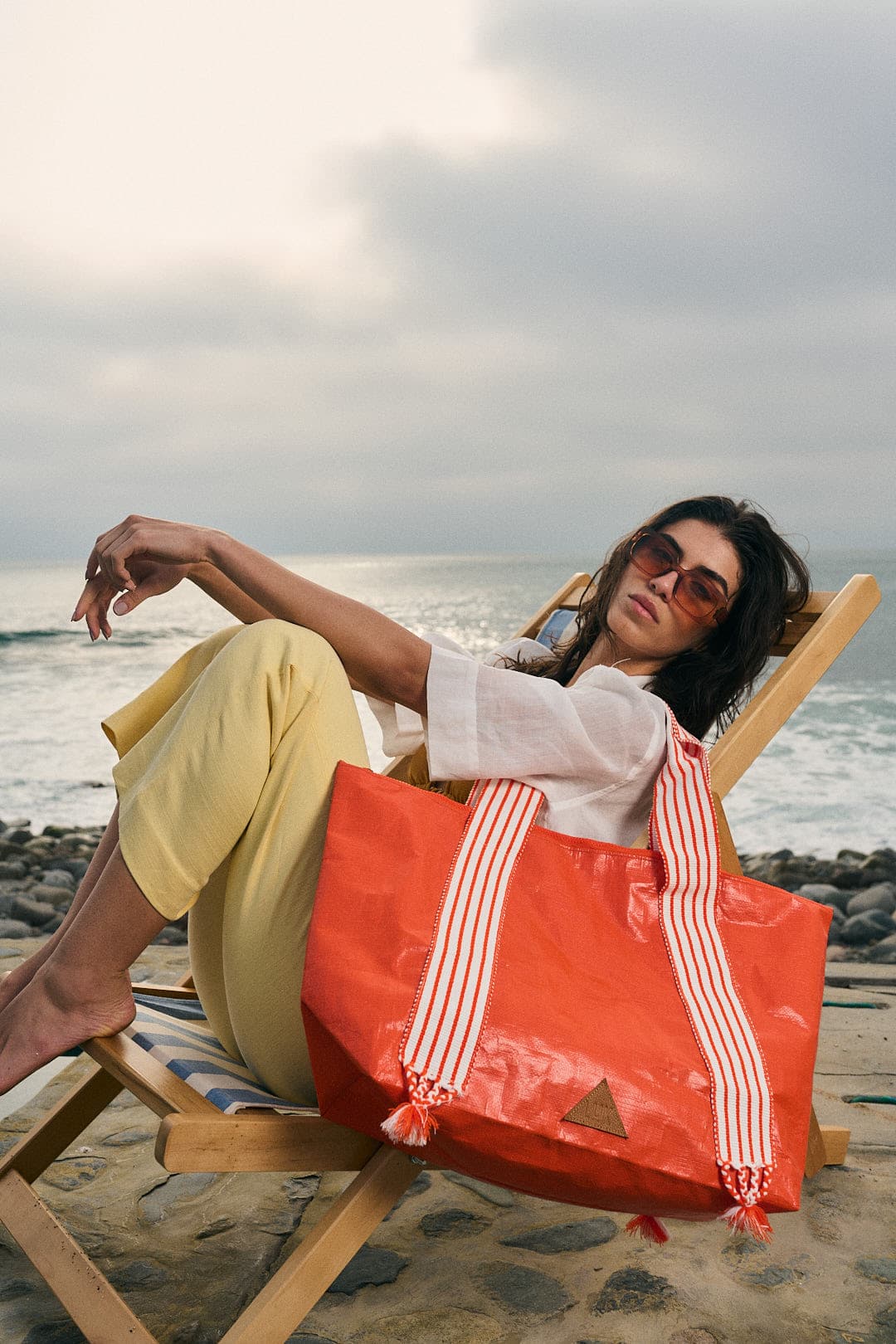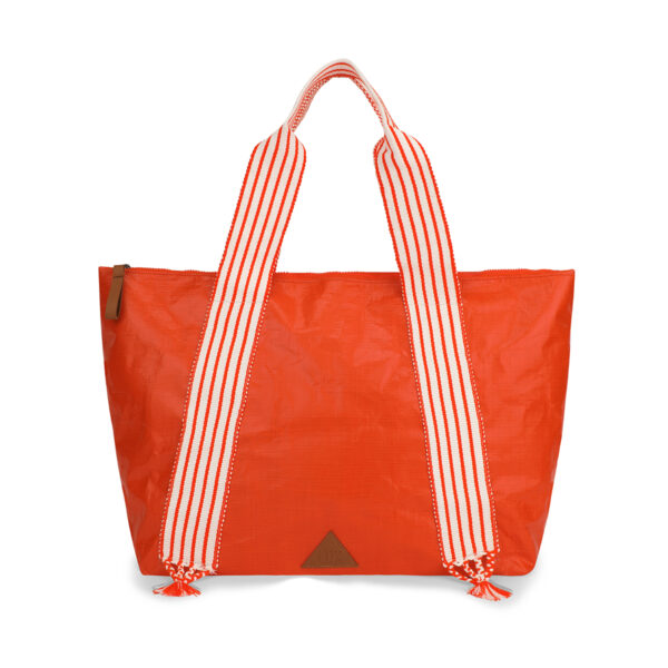 Impermeable y lleno de estilo. Sus asas tejidas en algodón, inspiradas en la tradición peruana, ofrecen un toque único. Con bolsillo interior para mayor organización. Detalles de logo y jalador en cuero para un acabado elegante.