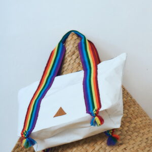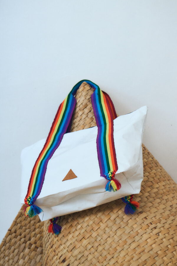 Impermeable y lleno de estilo. Sus asas tejidas en algodón, inspiradas en la tradición peruana, aportan un toque auténtico y distintivo. Cuenta con un bolsillo interior para mayor organización y detalles en cuero en el logo y el jalador que realzan su acabado elegante.