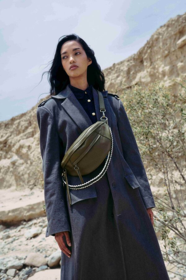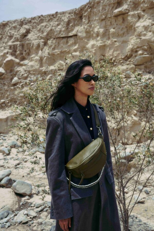 Confeccionado en suave cuero y asa ajustable para máxima comodidad. Bolsillo frontal, trasero e interior para una organización impecable. Forro de algodón con estampado shipibo. Adorno tejido a mano, removible para un estilo personalizado. ¡Ligero y funcional para tus aventuras diarias!