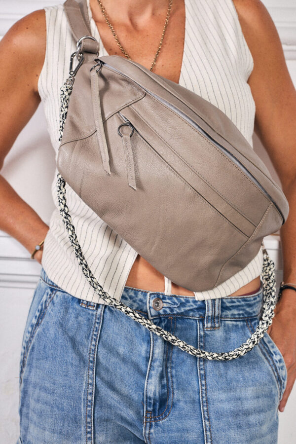 ¡El canguro perfecto para tus aventuras urbanas! Con asa regulable para un ajuste cómodo. Bolsillos delantero, trasero e interior para organizar tus cosas. Forro de algodón con estampado shipibo para un toque único. Adorno tejido a mano que puedes quitar según tu estilo.