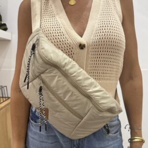 Funcionalidad y elegancia se fusionan en este canguro impermeable. Sus detalles de algodón y cuero reflejan la tradición marinera peruana. Con bolsillo ajustable y logo distintivo. Ideal para llevar lo esencial con estilo.