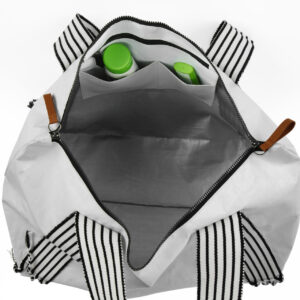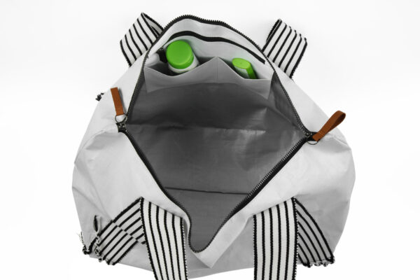 Elegante, resistente y adaptable a cualquier ocasión. Este maletín combina estilo y funcionalidad con un diseño pensado para acompañarte. Su material impermeable protege tus esenciales, mientras que las asas tejidas, inspiradas en el fajín de la marinera norteña peruana, aportan un toque artesanal y distintivo. Con bolsillo interior, cierre de doble vía y detalles en cuero, es el complemento perfecto.