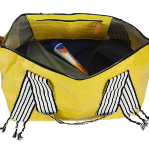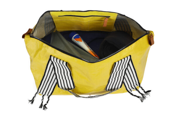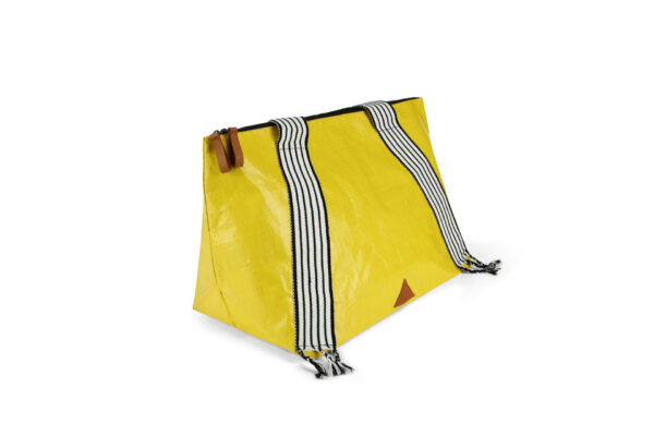 Elegante y resistente al agua. Con asas tejidas que representan el fajín de la marinera norteña peruana. Bolsillo interior, cierre de doble vía y detalles en cuero para un estilo único. ¡Ideal para el profesional moderno y activo!