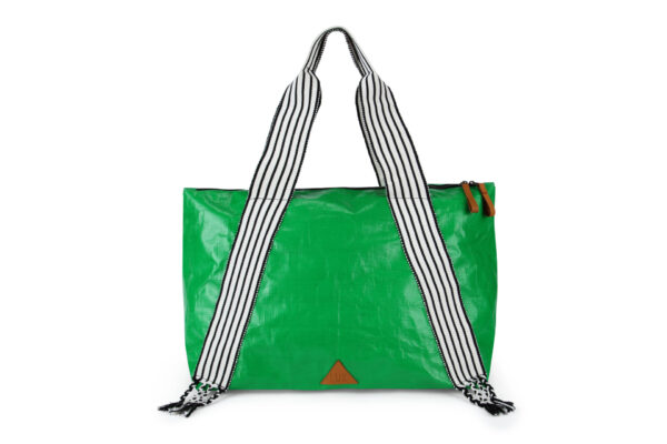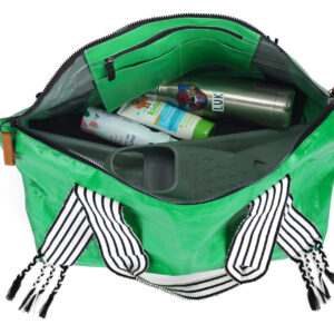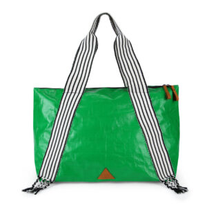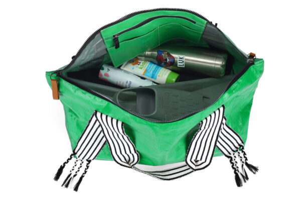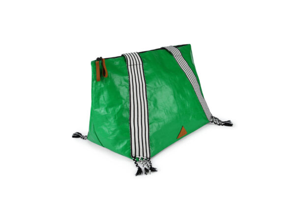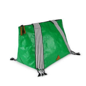 Maletín impermeable WET en Verde Loro. Resistente al agua, con asas tejidas inspiradas en la marinera norteña. ¡Protege documentos y electrónicos en viajes!