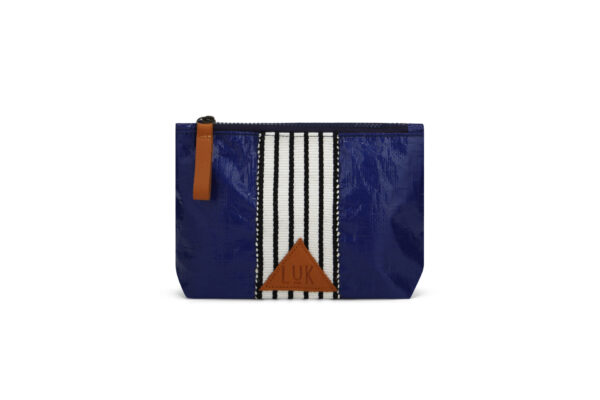 Compacto e impermeable, este mini neceser destaca por sus detalles únicos, como el logo y el jalador en cuero, además del tejido de algodón inspirado en el fajín de la marinera norteña peruana. Un accesorio funcional y práctico, ideal para la playa o la piscina.