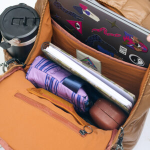 La mochila Fat es perfecta para llevar todo lo necesario de forma segura y cómoda. Cuenta con bolsillo con cierre y bolsillo exterior de fácil acceso. En su interior, incluye compartimiento reforzado para laptops de hasta 14” y bolsillo interno con cierre para mejor organización. Sus asas acolchadas y ajustables brindan mayor comodidad, tiene división trasera para enganchar al carry on y compartimiento lateral para tu tomatodo. Ideal para el día a día o viajes.