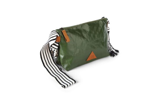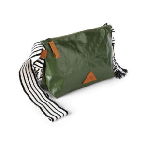Confeccionado para resistir el agua, este morral ofrece estilo y funcionalidad. Destaca con detalles como el logo y jalador en cuero, mientras que el tejido de algodón recuerda el icónico fajín de marinera norteña peruana.