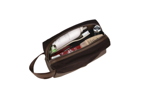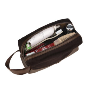 Este neceser de lona con cuero y forro impermeable es perfecto para llevar tus artículos de aseo personal de manera organizada y segura. Con su diseño en tonos marrones , este neceser cuenta con un práctico cierre que garantiza un cerrado seguro. Además, tiene un asa de mano para facilitar su transporte. En su interior, encontrarás bolsillos adicionales para mantener tus objetos aún más ordenados. ¡No te quedes sin este elegante y funcional neceser!