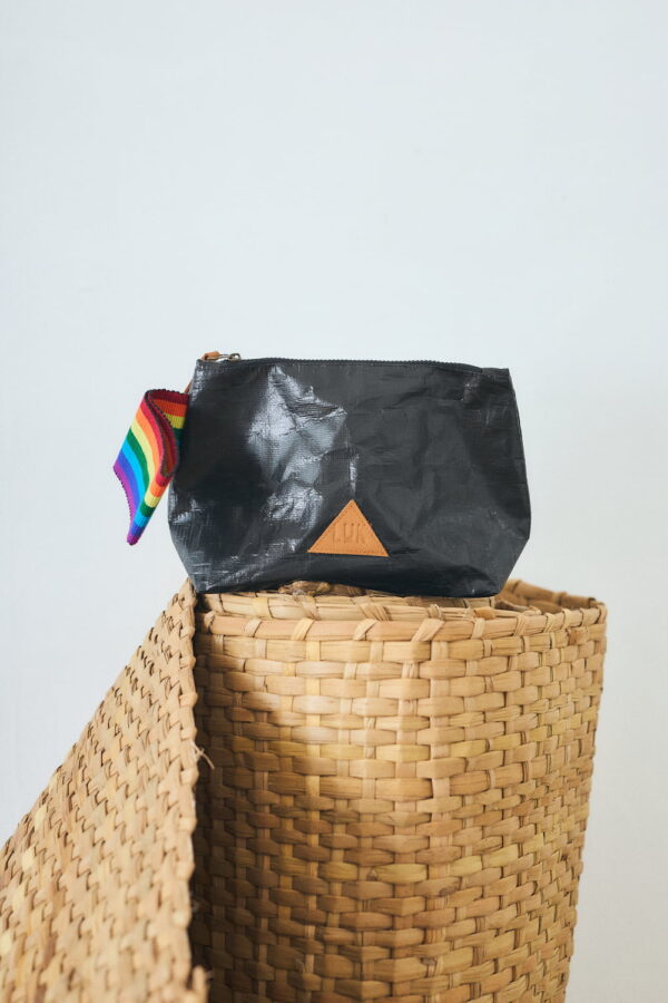 Perfecto para tus viajes, este neceser impermeable fusiona funcionalidad y estilo. Su asa de mano tejida en algodón rinde homenaje a la tradición marinera peruana. Detalles de logo y jalador en cuero añaden un toque de elegancia. ¡Viaja con estilo y seguridad!