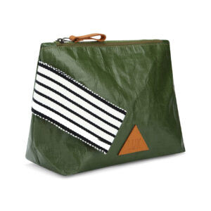Ideal para la playa o la piscina, este neceser impermeable combina funcionalidad y estilo. Su asa de mano tejida en algodón rinde homenaje a la tradición marinera peruana, mientras que los detalles de logo y jalador en cuero aportan un acabado elegante. El complemento perfecto para disfrutar del verano con estilo.